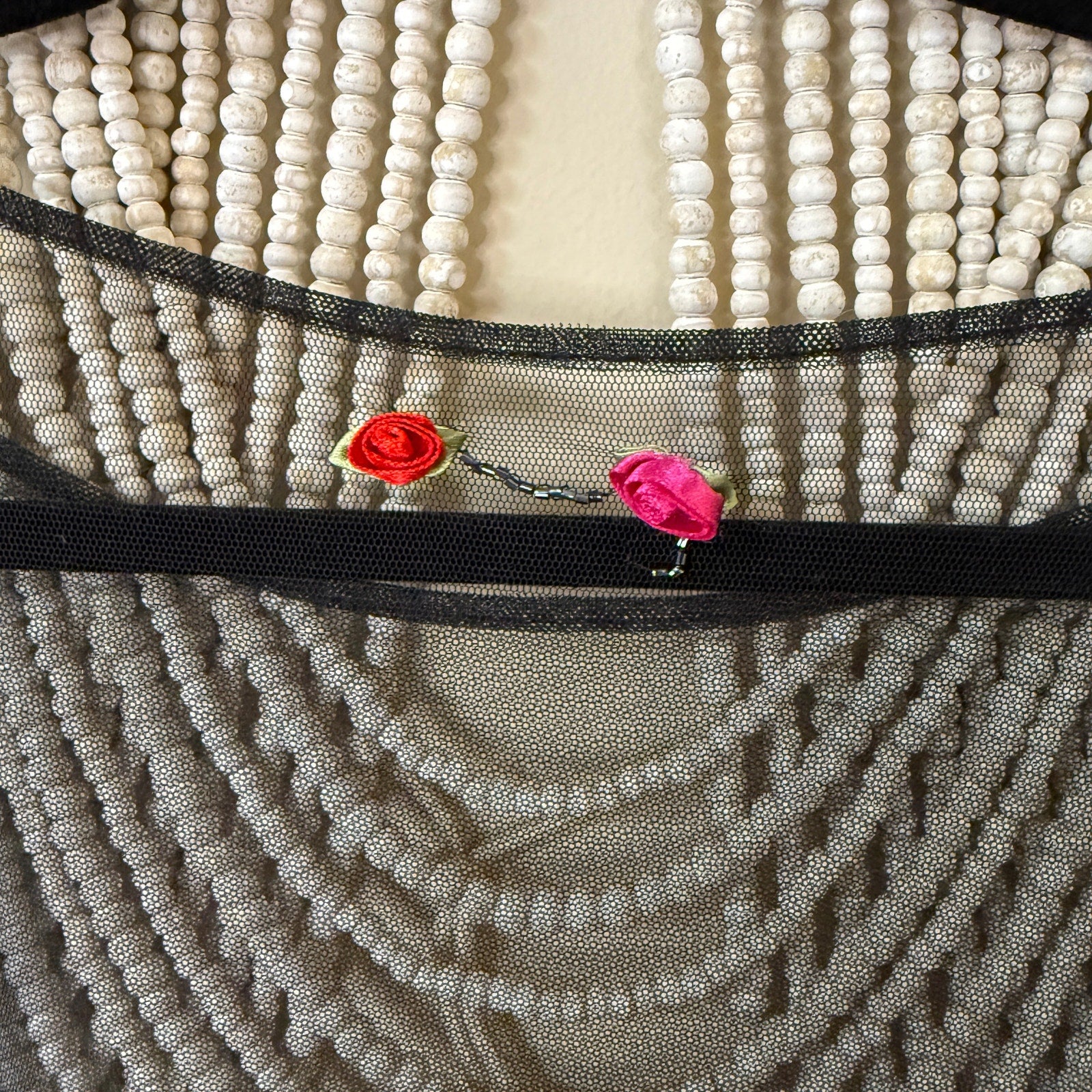 It's Raining Roses Beaded 3D Black Mesh Poncho Shawl One Size